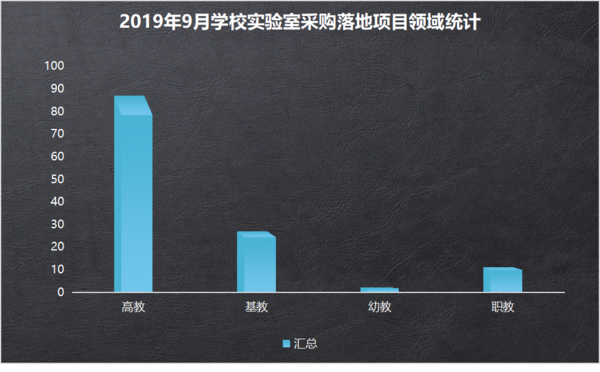 在9月份的學校實驗室設備的采購中,高教仍是主要采購方,主要用于校園實驗室建設。基教和職教緊隨其后,幼教需求相對較弱。日前,教育部辦公廳印發了《關于部分教育部重點實驗室通過驗收和調整事項的通知》,44個教育部重點實驗室通過驗收并開放運行,規劃“十三五”擇優新建70個左右,原則上不與國家和教育部已有布局重復、雷同。作為國家科技創新體系的重要組成部分,實驗室在高校學科建設、科技創新、人才培養和培育國家級科研基地中發揮著非常重要的作用。